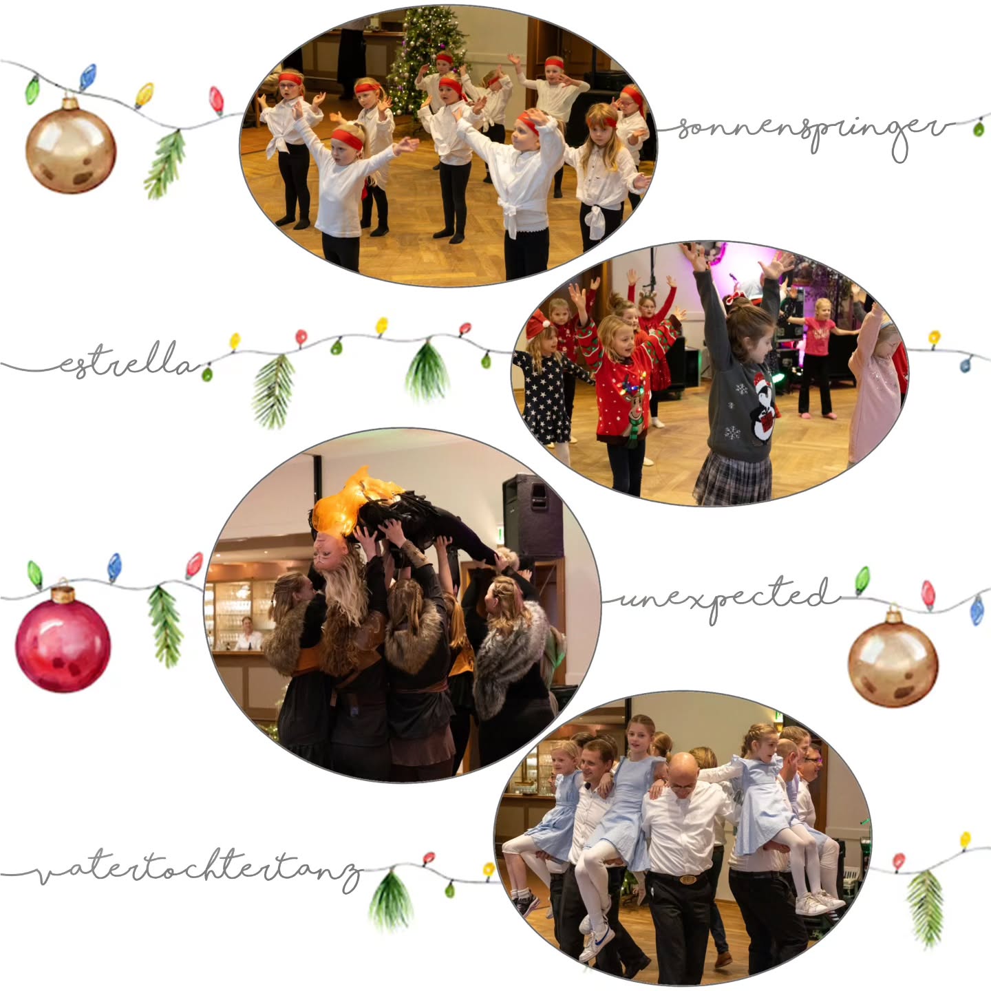 🌟 Nachtrag zum letzten Wochenende: Unsere TänzerInnen der Gruppen Sonnenspringer (geleitet von Katharina und Sonja), Estrella (geleitet von Alina und Hanna) und uneXpected (geleitet von Evelyn) sowie die Vater-Tochter-Gruppe (geleitet von Sina) sorgten für Stimmung und tanzten bei der Adventsfeier des VdK Garrel💃✨